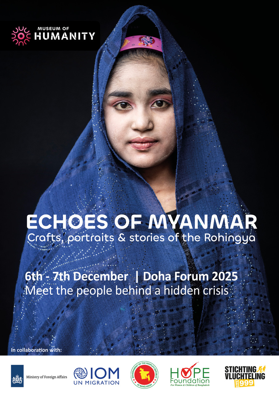 View handmade objects, impressive portraits and listen to personal stories. Be moved, open your eyes and listen to the voice of the Rohingya. Echoes of Myanmar is a collaboration between the Museum of Humanity and: The Rohingya Cultural Memory Centre (RCMC) of the International Organization for Migration (IOM), Stichting Vluchteling, Hope Foundation, Embassy of Bangladesh in the Netherlands and the Dutch Ministry of Foreign Affairs.